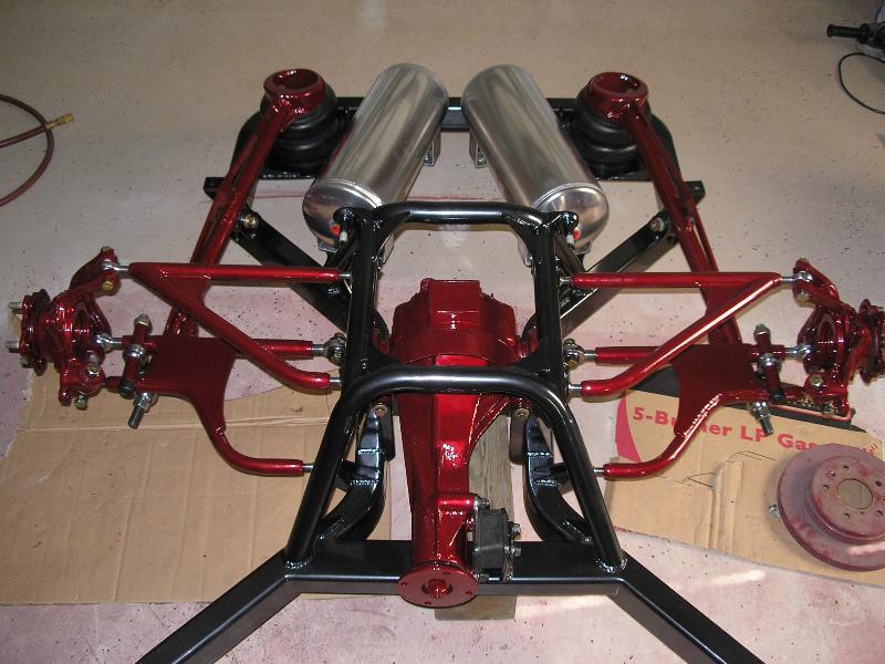 87 Mazda Rx7 independent rear suspension built cab back, 5 lug conversion for the rear end off of a turbo version. 2, 3 gallon aluminum tanks/ York 210 ED compressor, made from oasishp1000 / 3/8 Accuair valves / Slam specialties rs62's and 7's. 2in bell tech Drop spindles.