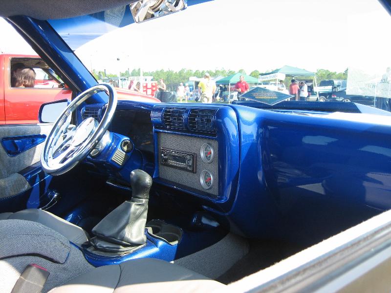 trad. b/d 3 1/2, cowl hood, shaved wiper cowl, door handles, third brake, gas door, sheet metal bed with radiused corners, frenched tag, motorcycle pop-up gas cap, custom trucker lady taillights, street scene mirrors, 98 bumper & valence. All work done by Mike @ Endless Fab. in Dallas, GA. 678-758-2563. Paint is 350z blue. Special thanks to Al & Jesse for the paint job.