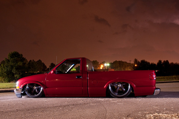 b/d 2.75" and raised bed floor line-x'd. Left all factory handles and bumpers to keep the look. Cal-Vu mirrors. Shaved only the hood squirters,front bed seams, fender trim holes and emblems.