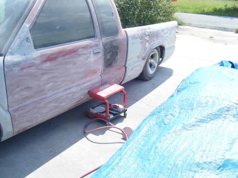 shaved mirrors,shaved gas door,filler neck for the gas in the bed,Shaved pass side door,shaved 3rd brake light,shaved taillights.shaved antenna,shaved tailgate handle,Shaved license plate box on roll pan,Molded-in roll pan,custom star license plate bracket mounted in bed by tailgate,ram air style hood,swaped front ends from a 99 s10 truck to a 97 s10 blazer.I have a 2tone primer paint job b