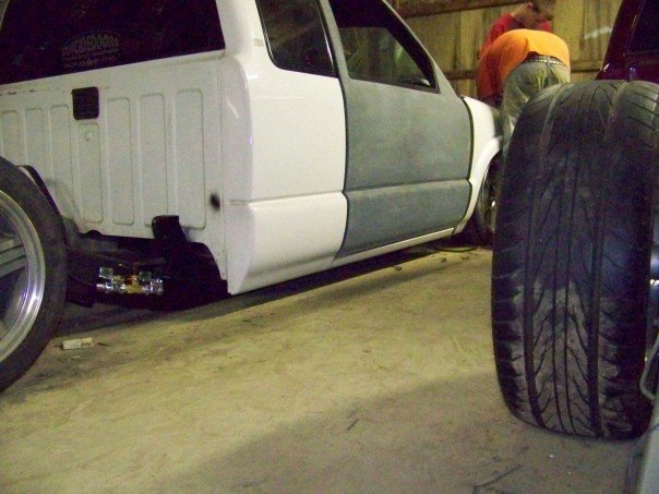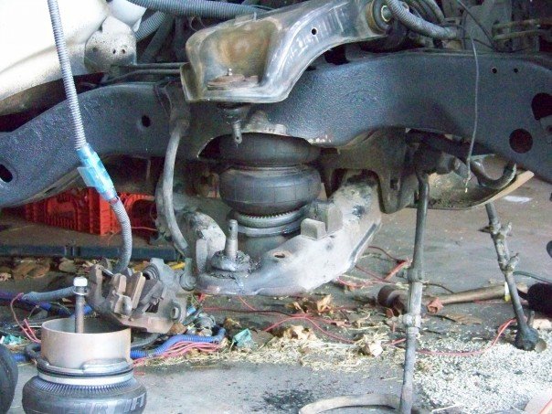 airlift 2600 bags in the back and 25's in the front, 8 1/2" airlift valves,1 450 compressor,1 5 gallon tank , custom reverse 4 link. 2 in" beltech drop spindels