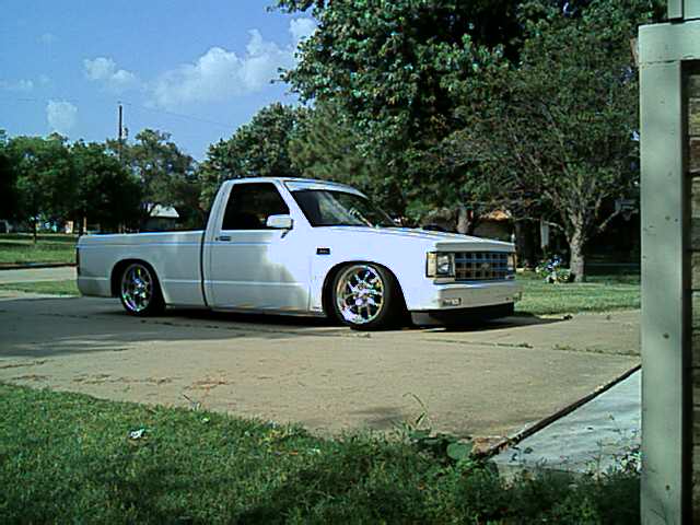 Billet Grill, Shaved antenna, molded in rollpan w/license tag in the center, shaved smooth tailgate, tailgate handle relocated to inside of tailgate, Painted to match front bumper, Street Scene sport mirrors, diamond cut Halogen head light conversion with relayed day time running lights, crystal eye bumper lenses, crystal eye corner markers, FBI billet grill w/19 bars, FBI Billet license plate tag, New front air dam, All new exhaust: 2-chamber Flowmaster muffler, no cat, all relocated 2 & 1/2" pipe w/3" outlet dumped in front of the differential, Painted (red and yellow front brakes & red rear drums) New transmission seal, soft clutch with quick throw pressure plate, new front brakes, 2 & ½” sway bar off 93 s-10 blazer, new sway bar bushings, master flow fuel filter, new higher flow fuel pump, 3/8 thick transmission protector skid plate.