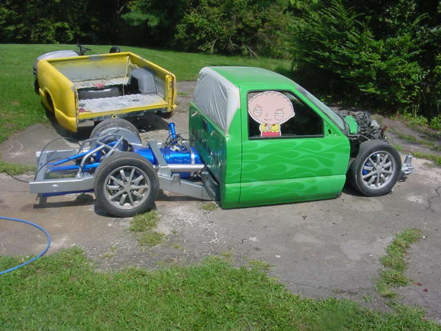 Layin rocker.Bobydropped 3" ...changed over the front end from a s10 a isuzu hombre & added the hombre humps fronm a donor isuzu bed into my s10 bed, Sheetmetal bed, Shaved handles,tails,tailgate, & 3rd brake light