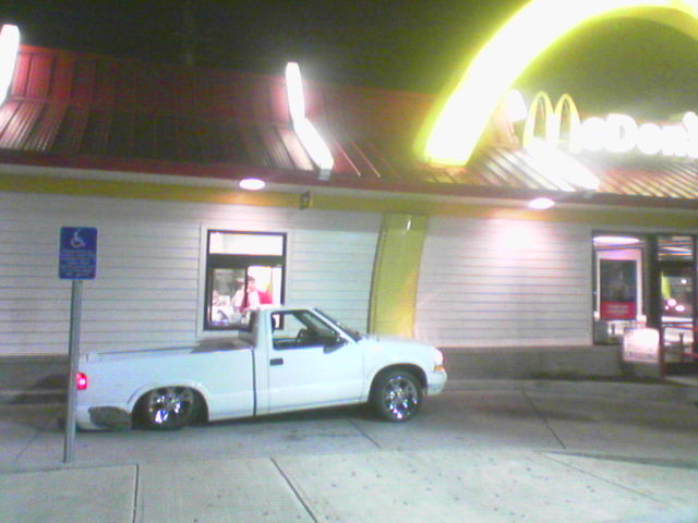 Body is straight as an arrow, 2-stage paint re-sprayed stock white, tubbed bed also repainted stock white with clear. suspension components sprayed in gloss black. grant customs smooth roll pan, shaved 3rd brake. plate bracket mounted off bed.