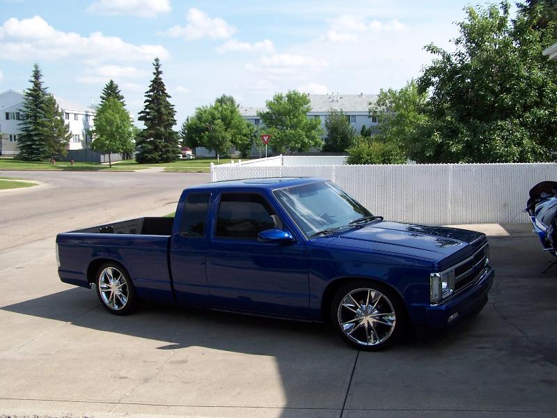 '04 Corvette Blue, Shaved front bumper, tailgate, handles/locks, antenna. Belltech rollpan, street scene mirrors, HID diamond cut headlights, all clear lights, T-Rex Billet Grille, and a sun roof.