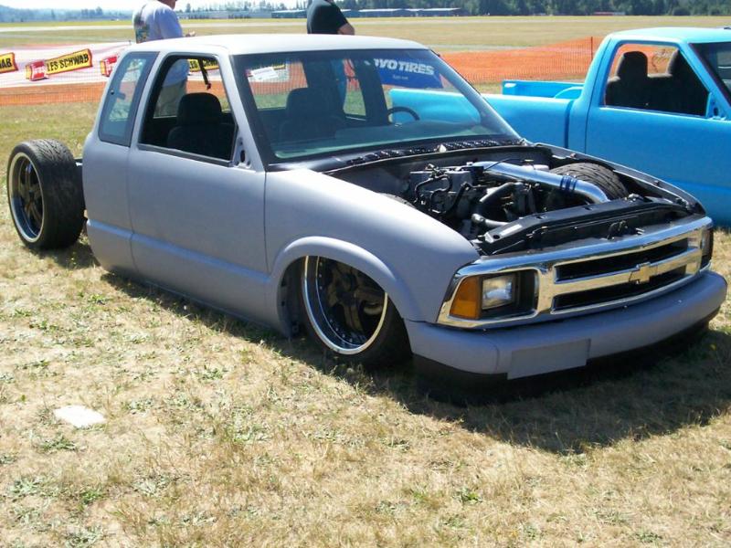 Shaved body seams, third brake light, antenna, door handles, washer squirters, cali combo. Shaved front bumper with frenched plate. 97 Blazer composite headlights and grill.