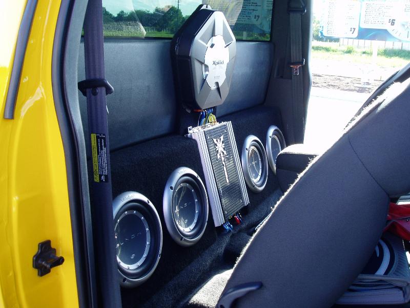 4-8" RF p2 subs, Alpine mids, and boston accoustic highs.