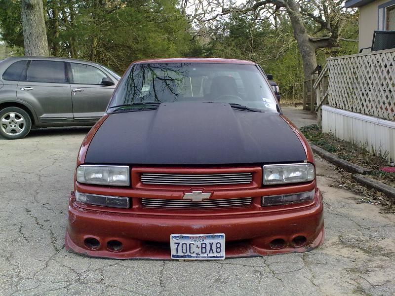sunset orange shaved handles with door poppers,gas lid, tail lights, tail gate welded in, tail gate handle,step shaver kit for a sport side, billet grille insert reflecion cowl hood,bilet bow tie street sceen bumper cover all painted becides the bed (its under construction)