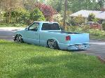 2000 chrome front bumper, shaved tailgate handle, shaved antenna, hood squirters, and upper cab seams, trailer fenders welded in the bed...painted '91 Cameo S-10 pastel blue by me & dad