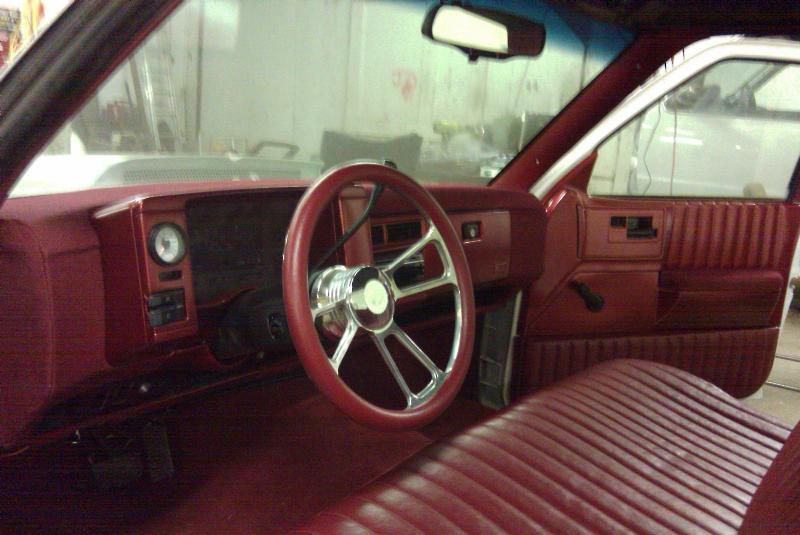 full red vynal, paint, and carpet, billet steering wheel
