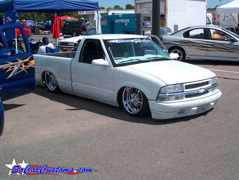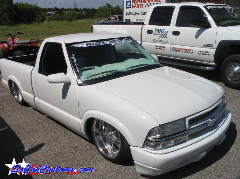 shaved doors, antenna, hood squirts, gas door, tail handle, taillights, shaved & molded stock bumper, 10" led's in tailgate,