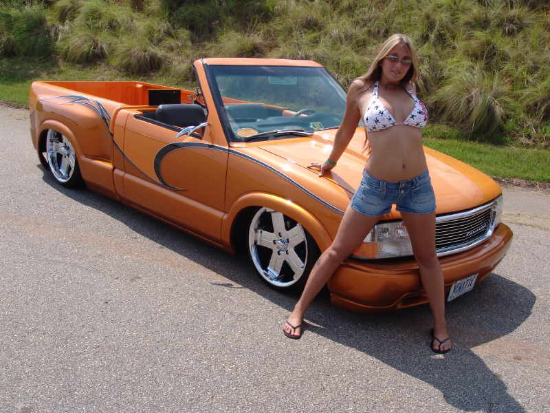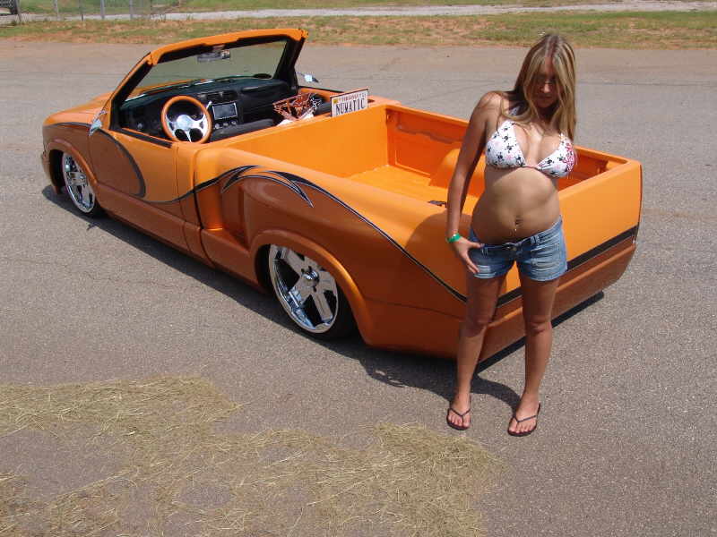Sonoma Front End, Cowl Hood, Billet Wipers, Motorcycle Mirrors, Clean Shaven, Stepside Bed Shaved and Molded, Tailgate Skin Molded, Cadillac Taillights, Two-Tone Bright Orange/Burnt Orange, Graphic Stripe, Roadster