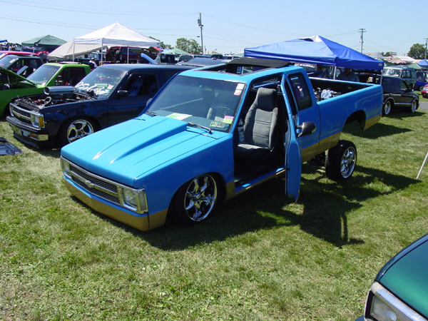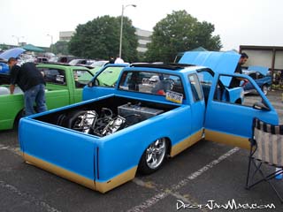 Modified front wheel wells for 20" wheels; relocated battery to bed; relocated fuse block up 6"; hand made front bumper; 91 chevy grill w/billet insert; 36X36" sliding rag top; shaved handles, locks, gas door, antenna, wiper cowl, firewall, tail lights, body lines; suicide doors; smooth full skin combo(swing out); hide-a-way license plate; projector headlights; led m3 mirrors; blue/tan primer/sealer; LED tail and side marker lights