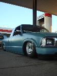Shaved 3rd brake light, gas filler, door handles, windshield washer pissers, taillights, and antenna. Custom Hi-Tech L.E.D.s installed in the Cali Combo and custom tubs in the bed. Sport Mirrors, clear corners, chrome license plate holder, and billet inserts. New '98 style front bumper and valance. Tubbed and smoothed out bed. Also a 35x35" sliding ragtop from Street Beat Customs. One piece solid wiper cowl from Stylin' Concepts. Oh yea, Long Bed Conversion.