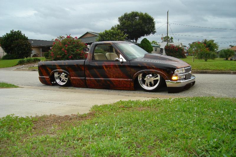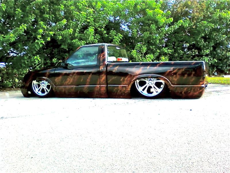4' bodydrop, 4' custom cowl hood. Paint job done by John Burrough at Unique Auto Body in Melbourne Florida. Pinstriping done by Mikey.