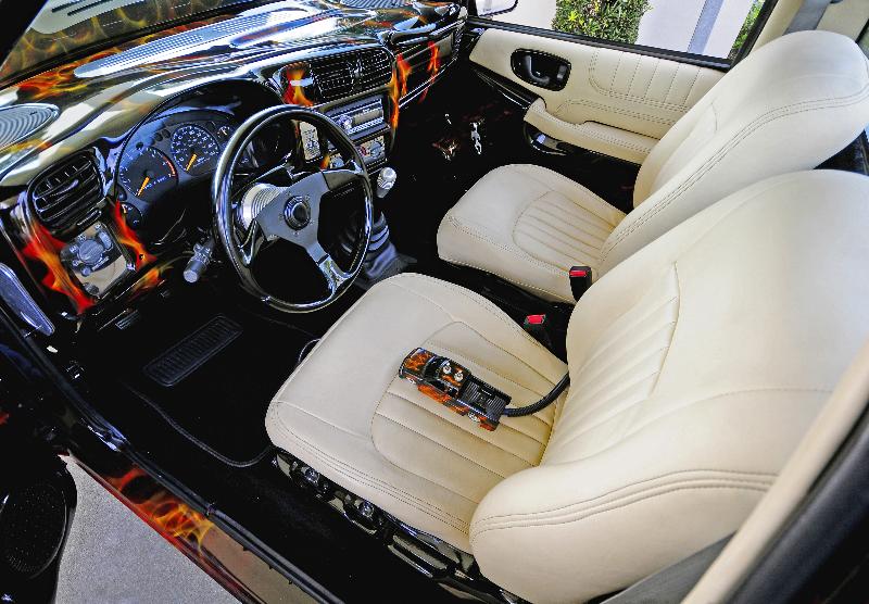 Fiberglass design by John Burrough. Upholstery Design by Jeff Burrough, at Unique Auto Body.