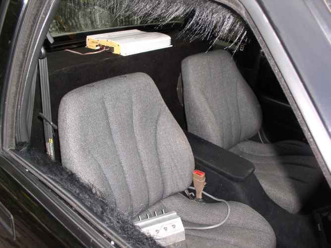 custom headliner and door panels, Cavalier seats with headrest removed, Fiberglass centerconsole, air conditioning controls relocated to glove box, lots o billet pieces