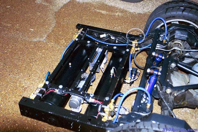 Air Management: 3/8" SMC valves FBSS, 1/2" line, 2 ART slim 5 gallon tanks, 2 Viair 450 chrome compressors, all custom mounted under the bed.