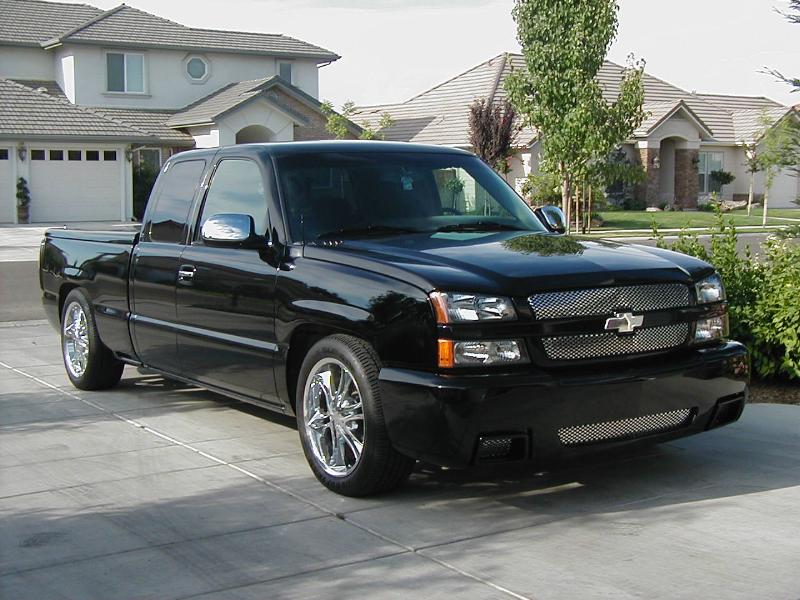 SS front bumper cover, shaved tailgate, welded roll pan, escalade handles n mirrors, speed grille....brand new paint black paintjob