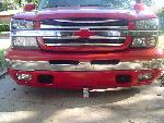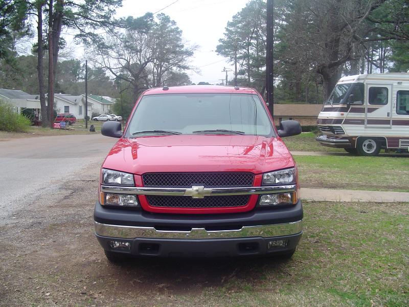 Victory Red, shaved all moldings, emblems, Roll pan, tailgate handle flip, Lo Rider bed cover, Escalade handles, painted mirrors and bumper plastic, Billet step plates, Billet grill