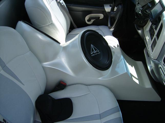 Smoothed and painted dash and other little pieces, vinyled seats and head liner to match, fiberglassed and two-toned visors, custom speaker center console