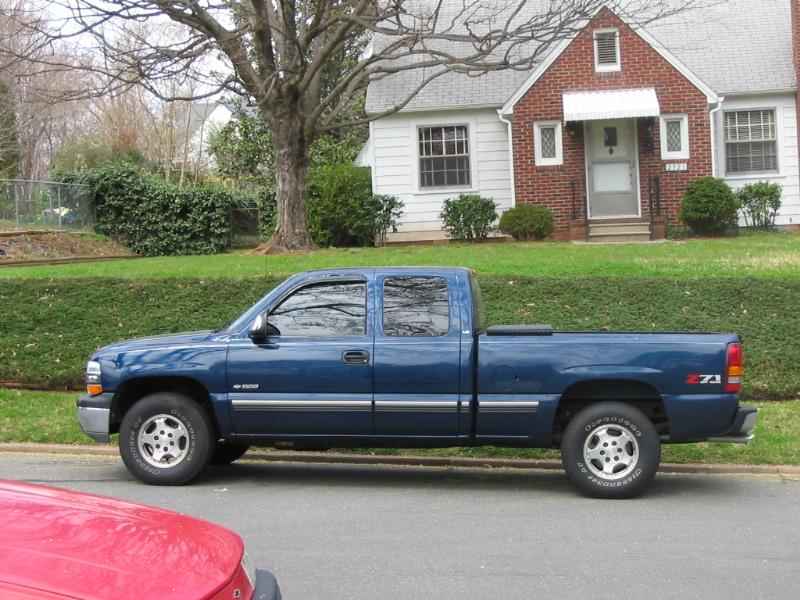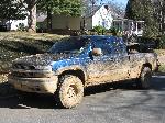 dk. blue, tinted windows, billet grille, '04 tails, 3/4 ton black fender flares, black housing clear corners, Sylvania Xenarc HID conversion headlamps........SOLD IT!!!