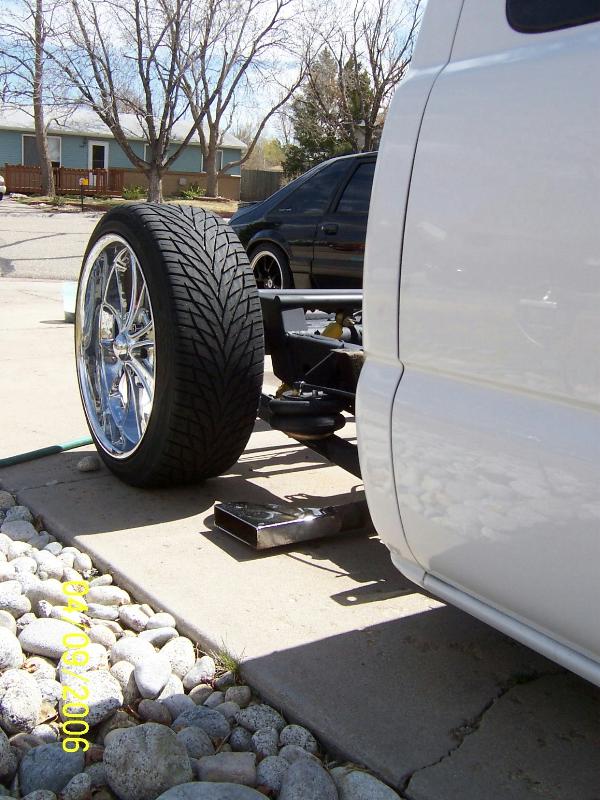 KP up front. Ekstensive 2 link rear. raised x member 8 1/2" gc 350's, 1/2 line,dakota digital gauges,EAI Switches,2600's all around.5 gal of air & 1 air zenith soon to be 2 5's and 2 AZ's..