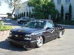 All painted BMW Carbon Black (jet black base with blue and silver metallic) with graphics and pinstriping by Steve Vandemon using House of Kolors paints. Shaved doors handles, 3rd brake light, GM Parts SS front fascia,