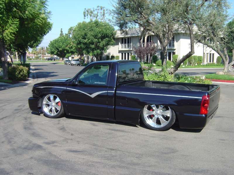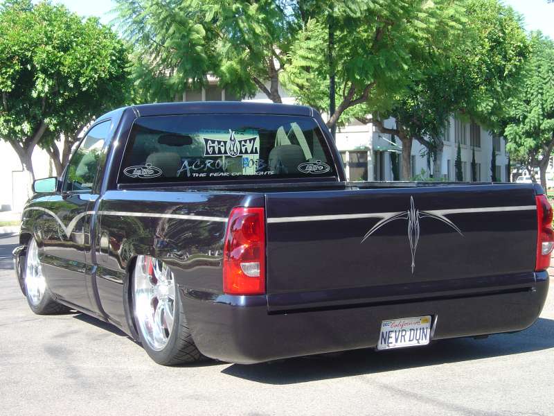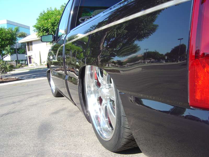 Shaved tailgate handle and rollpan by Sir Michaels. Trenz billet antenna. All body work done by Anaheim Prestige in Placentia, CA and Steve Vandemon of Absolute Custom Paint.