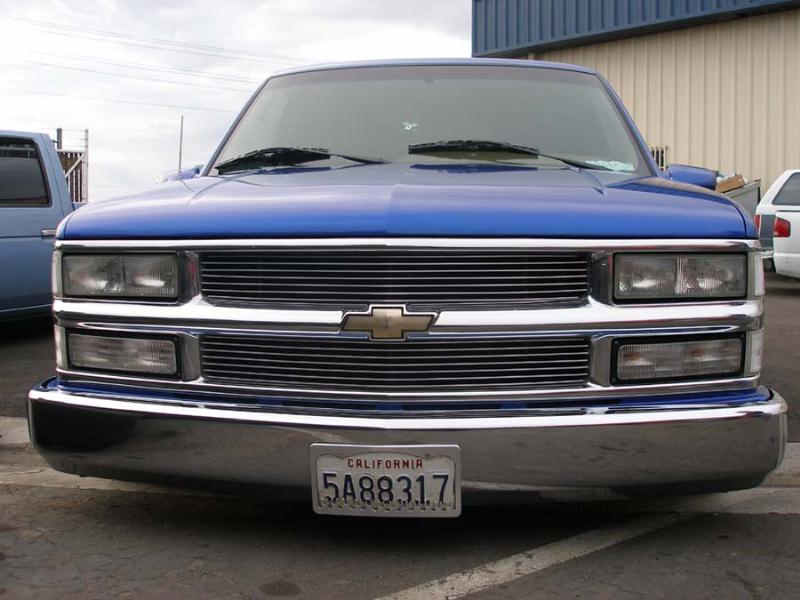 SHAVED TAILGATE, 3RD BRAKE LIGHT, ROLLPAN, CHROME FRONT BUMPER, CLEAR CORNERS, EURO TAILS, MIRRORS, DARK CLOROSEN BLUE PAINT