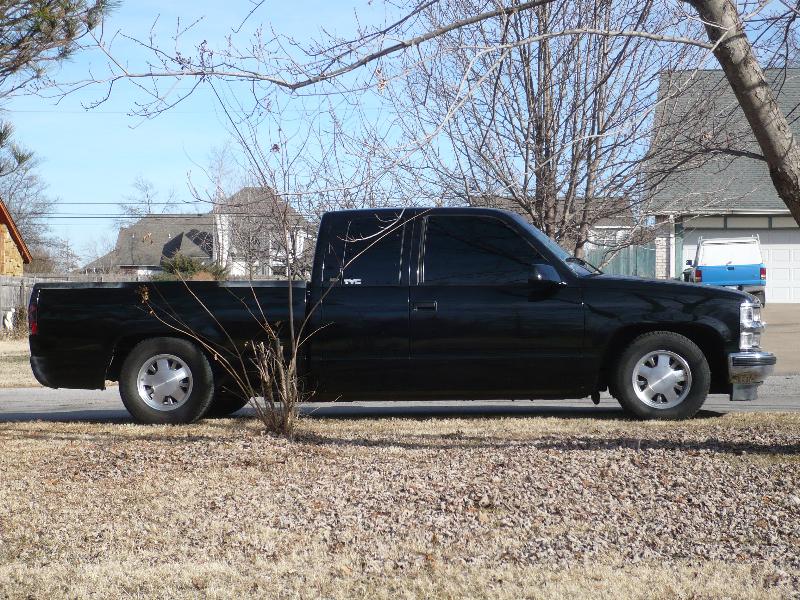 Chrome bowtie, TYC Clear Headlights, Clear Turn signals, Clear Corners, LED 3rd Brake Light, TYC Black Euro Taillights, 5% Tint, Smooth Roll pan, Tailgate handle fliped and shaved, License plate box in tailgate, Shaved Stake Pockets