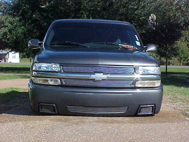 shaved tailgate handle, shaved emblems, molded rollpan, ss front bumper,smooth wiper cowl, ss mirrors, upper and lower billet grilles, LoRider bedcover, escalade door handles, 03 silverado taillights, billet shorty antenna,