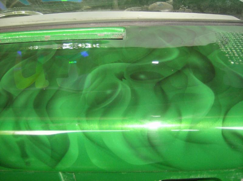 all smoothe out and painted with dupont hot hues extreme green with true fire and skulls in black