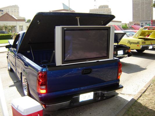 Gaylords bed cover, gelcoated to match truck, projector style headlights and clear bottom corners, Painted top and bottom front bumper, sport mirrors, Billet 8" antenna, Chrome bowtie emblem, chrome switchblade grille, Chrome double edge door handles, power bed cover lift, Steel F.B.I. roll pan, shaved tailgate, devious customs gas tank, dk cust. trans. crossmember