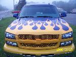 TRUE BLUE W/ BLUE ICE PEARL, YELLOW ORANGE AND RED FLAMES
