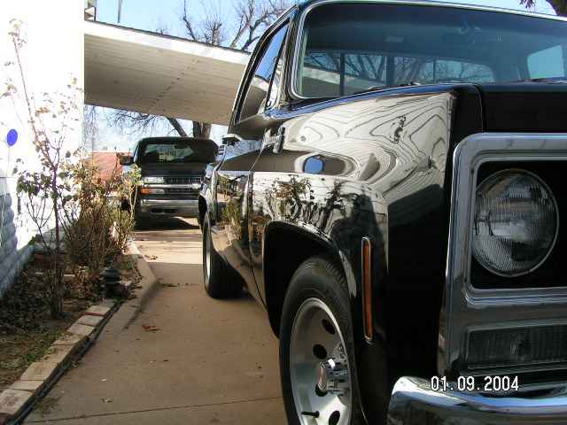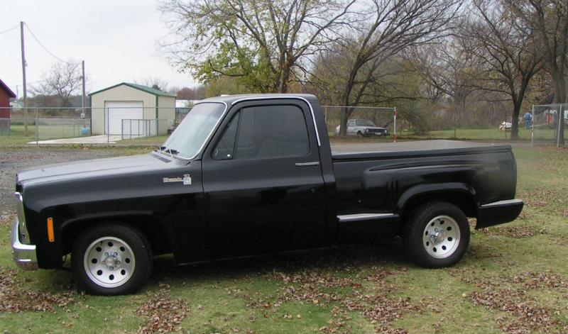 kinda black.. Crystal Black,with a 93 or 94 late Model Step-side bed, fiberglass bed cover, Billet Step Plates