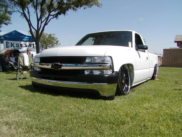 In the back i have the KP 6-link with the Watts link, two seven Gallon tanks and two Vair 480's with 1/2 inch line runnin to 7 inch dominator in the back and 6 inch Dominators in the front. I also have After market lower control arms in the front and the upper control arms are flipped.