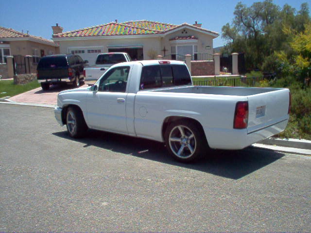 shaved tailgate handle, filled in bed pockets, molded smoothie rollpan and license plate box frencehd into the tailgate. street scene mirrors, painted bowtie, escalade door handles and a billet shorty antenna