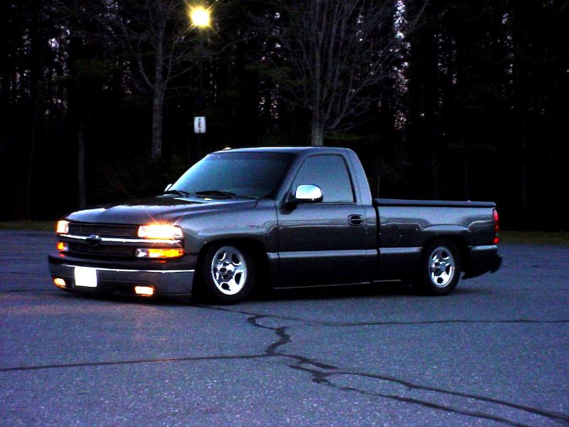 Colormatched doorhandles, mirror plastic, chevy bowtie in grille. Shaved tailgate. Billet Grilles.