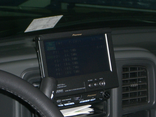Poineer in dash DVD with stock Bose, rockford amp and woofers, and Subthump under seat box.