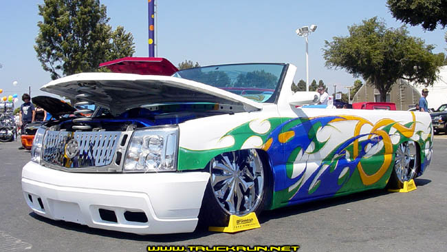 Fully Shaved, Unibodied, Convertible w/4" chopped windshield, full custom graphics using HOK paint and pearls