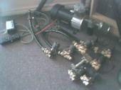 stock floor 3and 3/4 inch body drop,new cab mounts,bed mounts ,tranny crossmember,exhaust haggers,driveline hoop,custom built wish bone 3 link with the bags on the lower bars and a set of fox shocks,tube upper and lower control arms,8 parker gold valves,avs switch box,3/4 in air line and a e.d.c,4,8in slam bags,3 air tanks about 11gallons of air.all work beenin done at bad habit customs in fresno fresno cali