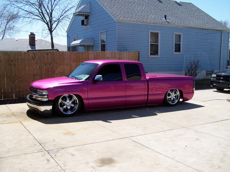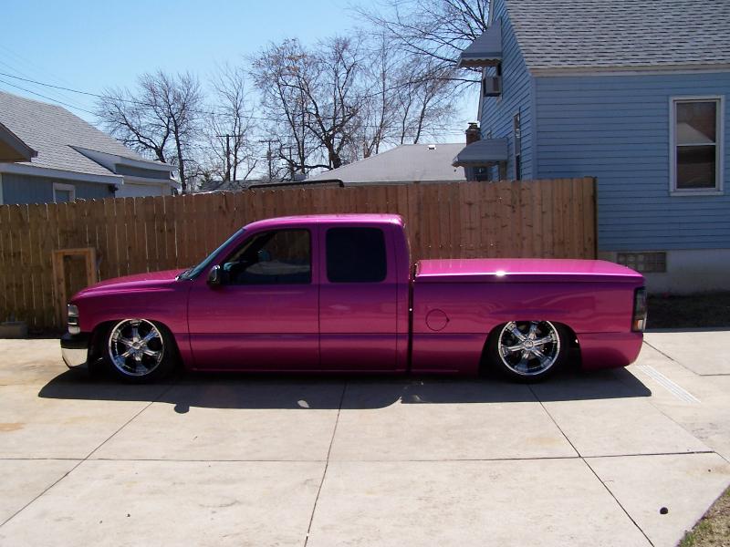 shaved doors tailgate handle molded roll pan shaved 3rd brake light paint purplecent pink all done by Scott at Kreative Body works
