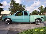 stock floor layin door on 22s. Fully shaved, full primer. Molded on 2003 toyota tundra tailights. Custom rollpan w/o license plate box because thats all they sell for stepsides with stepshavers, raised, widened and reshaped rear fenders to match lights and to clear for 22's. Sheetmetal and rhinolined bed. Shaved and rhinolined firewall. Booster relocated to underneath driver stepside.
