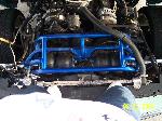 Lays door on 22"'s. HS 82's in front hybrid with 10 in chrome rams and hs 82's out back on powdercoated escalade blue cantilever four link. Full 2x3 tube frame front to back. All hand made front a-arms. All tubular crossmembers all podercoated along with a powdercoated gray/silver frame