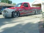 ss front bumper, custom cleared lights, tailgate shaved with molded in rollpan,2 LEDS in pan, shaved 3rd brake, ss side mirrors, billet grill,cadillac handles, custom flames