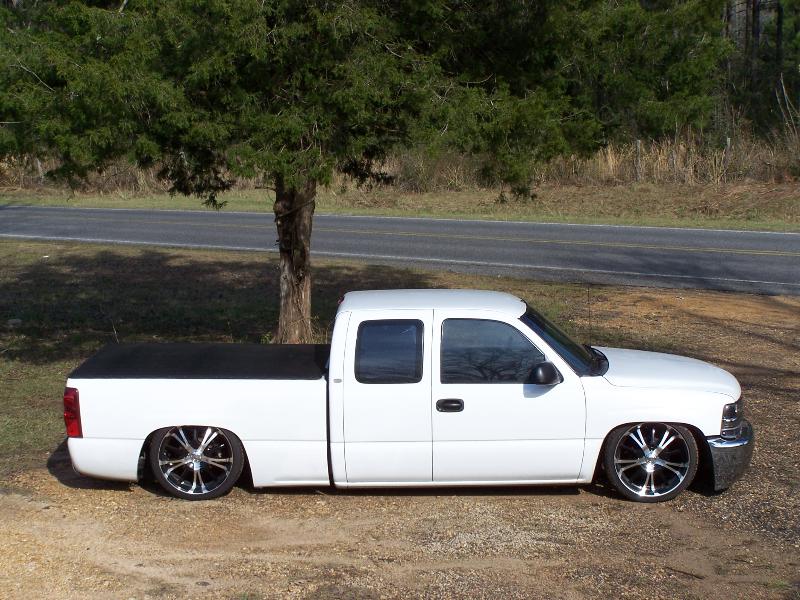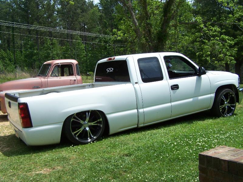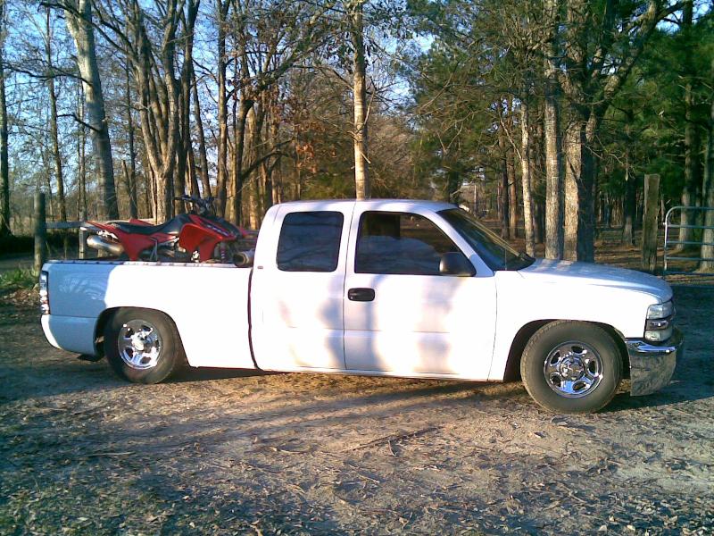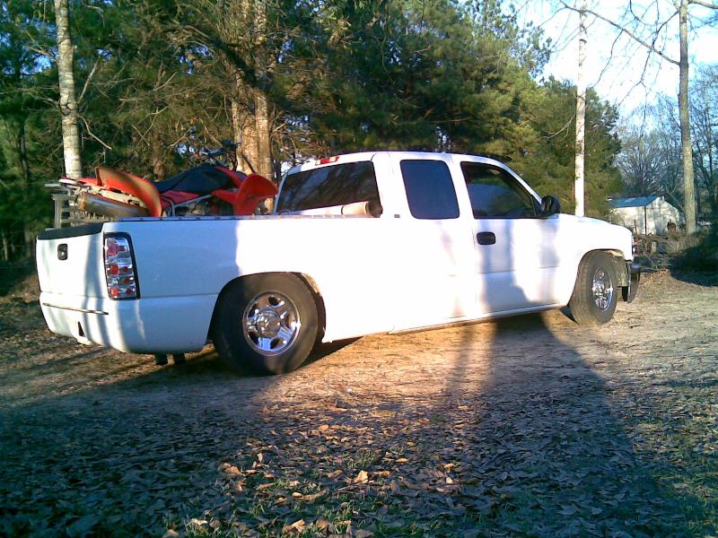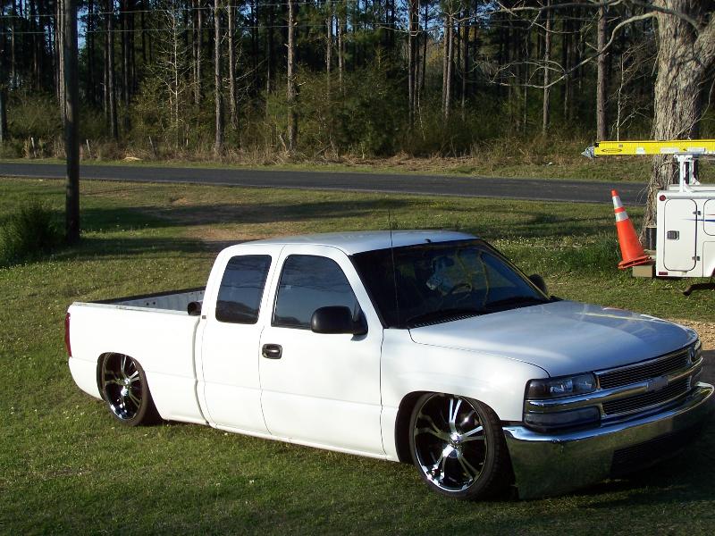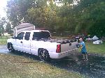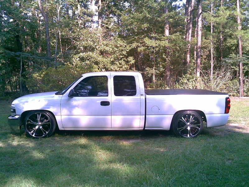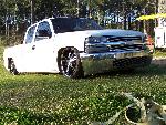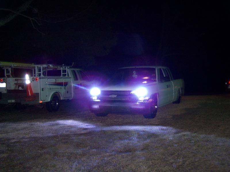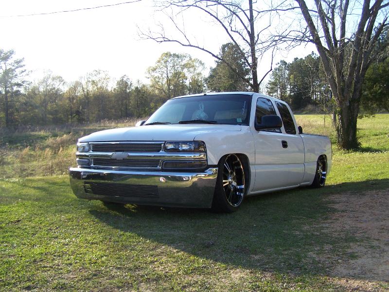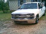 Chrome Tahoe grill with billet, smoked headlights with 12000k HIDs smoked corner lights and wierd chrome front bumper with billet inserts. 05 taillights rollpan
