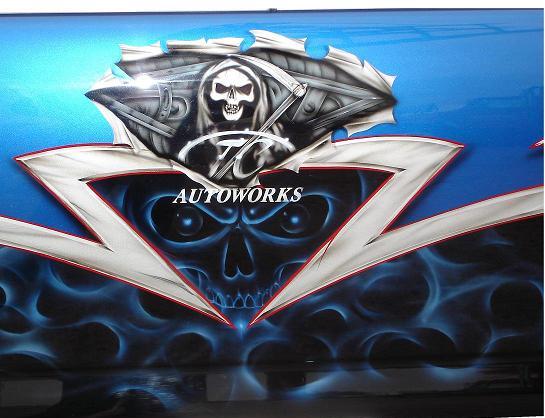 dash smoothed and painted two tone like exterior, black leather and blue suede seats , suede head liner,empire motorsports billet, customs console with 2 7" screens , door panels smoother and painted to match paint