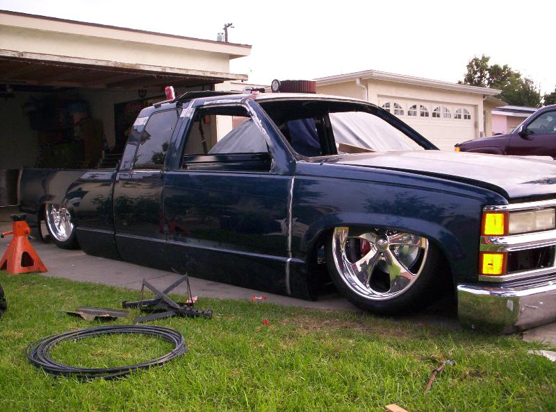 Shaved door handles, gas door, rain gutters, ant, taillights, roolpan, molded tailgate, frenched plate, suicide doors, chopped top 2 1/2 in rear 3 in the front all factory glass, stockfloor body dropped to the door sectioned bed so top of bed lines up with bottom of window