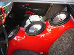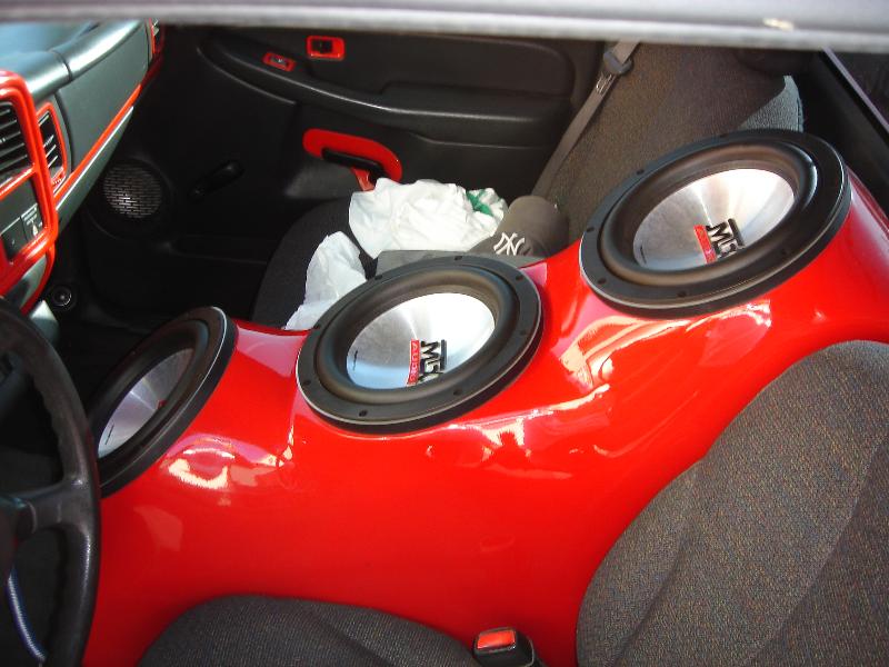 alpine headunit, infinity 4 channel on infinity 5 1/4 components in the kick panels and 6 1/2 components in the doors and 4x6 in the back, subs are three mtx 8500 tens on a mtx 1501, big three upgrade, yellow top optima and 2, 2 farad caps